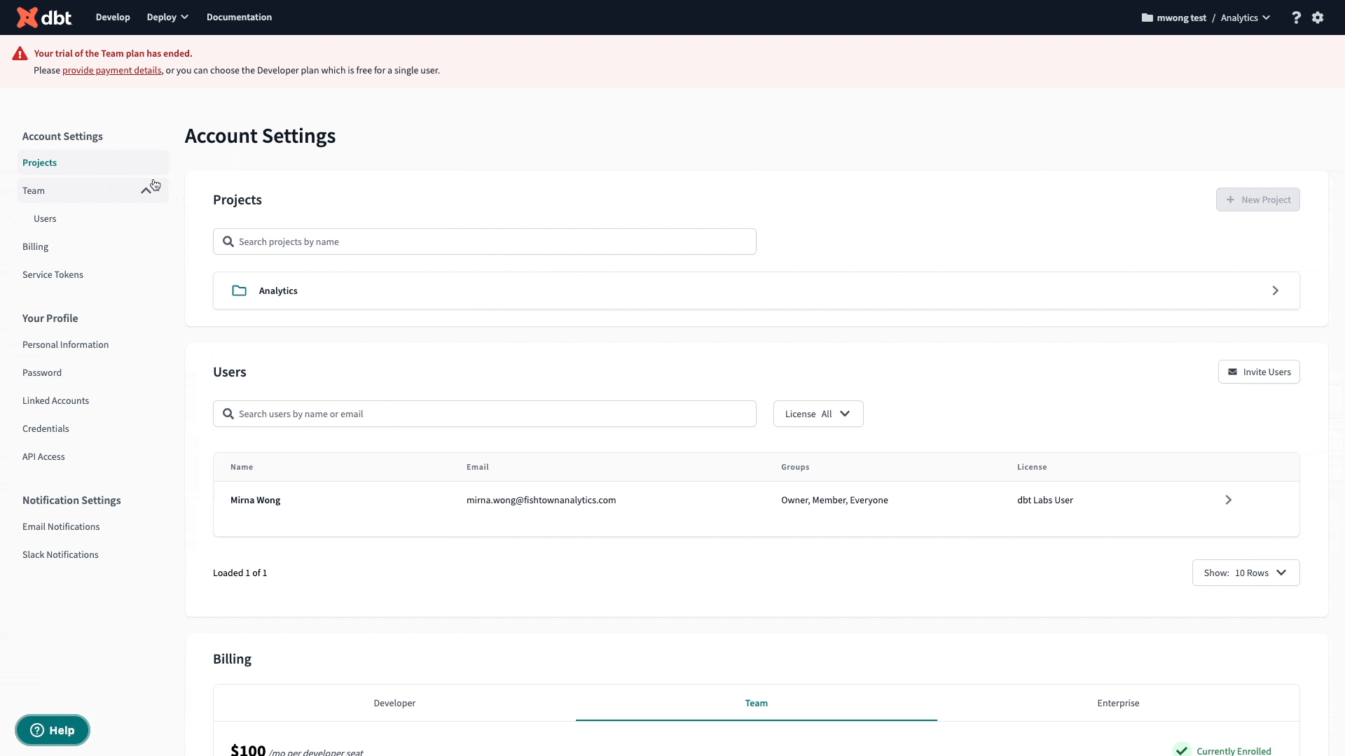 5. This automatically unlocks your dbt Cloud account, and you can now enjoy the benefits of the Team plan. 🎉